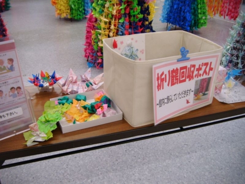 折り鶴回収ポスト↑(回収した折り鶴は館内に飾ってくれる)