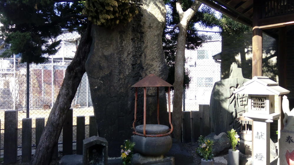 今では主流ではないと思うけど、ちょっと前までは三味線には猫の革が張られていたみたい。楽器製造のために猫を犠牲にするってのは現代の日本ではいささか問題アリな事案ですが、これも時代による価値観の差なのでしょう。そしてこの猫塚は三味線の原料として犠牲となった猫たちの供養のためのもの。