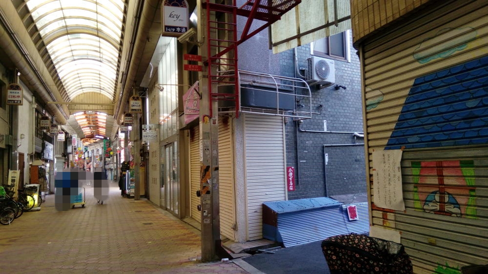 この商店街・・・マジで酒の自販機が多い。路地入口には「小便するな」のプレートという、なかなかに昭和チックな西成でした。