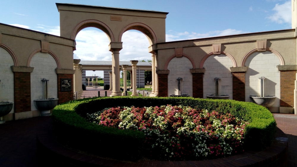 エントランスには大きな花壇があります。ここで食べるラ〇チパックは絶品です。(※すぐ後ろは交差点で車の騒音があるので、ランチには適していません)