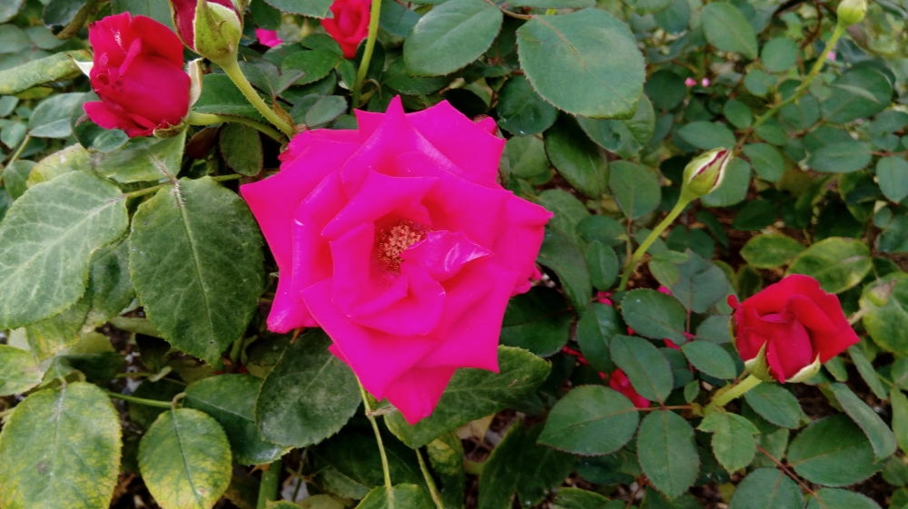 凛々しいお姿のバラ。けれどもまだ蕾(つぼみ)のものや、枯れてしまっているバラも多くて少し残念だった。