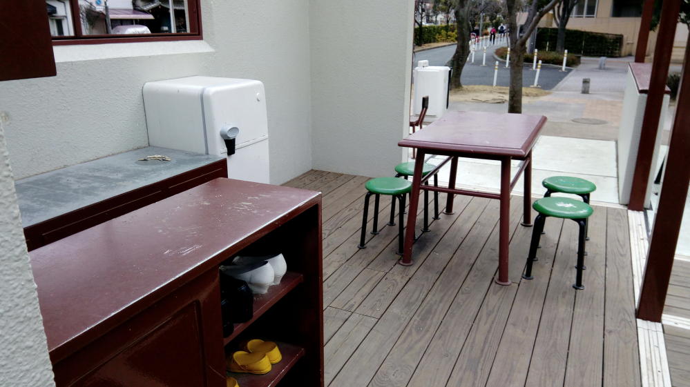 ・・・説明プレートが部屋の壁に貼ってあったので読んでみたが、どうやら昭和31年頃にしてはこの部屋は豪華な扱いだったらしい。まぁたしかに椅子式用の食事テーブルが備え付けられている物件っていうのは平成でもめったに無いよな。現代人は椅子式用テーブルよりコタツが好きなんです。(←偏見)