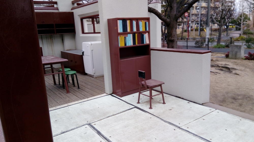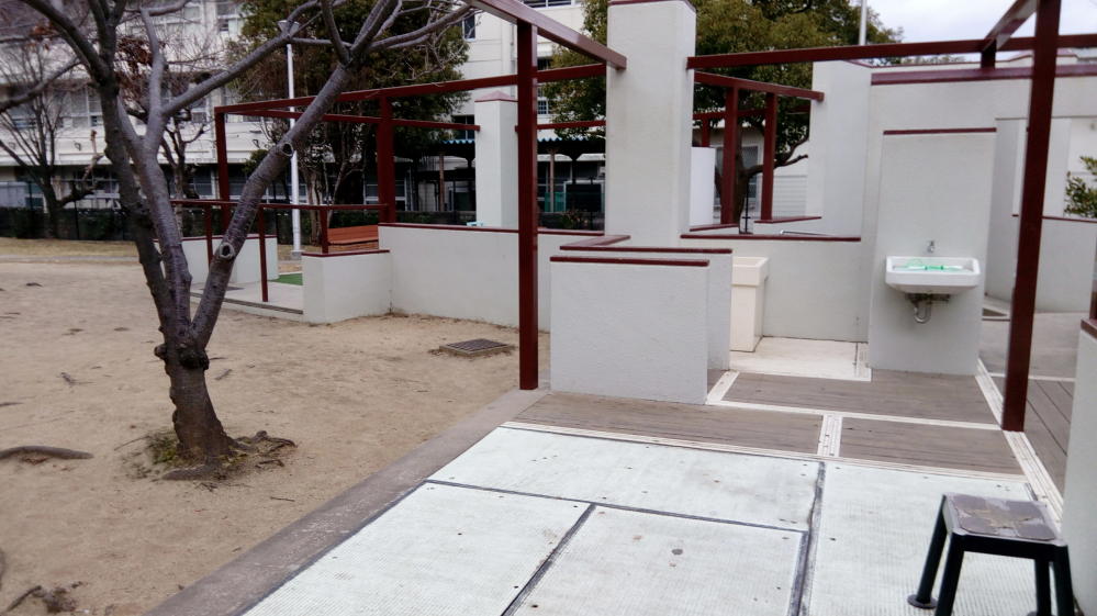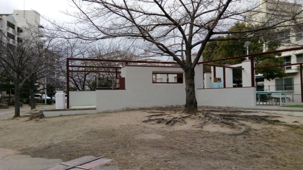 UR都市機構住宅サンヴァリエ金岡のマンションが立ち並ぶ場所にこの公園はありまして、園内は遊具そのものが昭和時代の公団住宅を超リアル復元しているという、ちょっと奇天烈な公園なのです。
