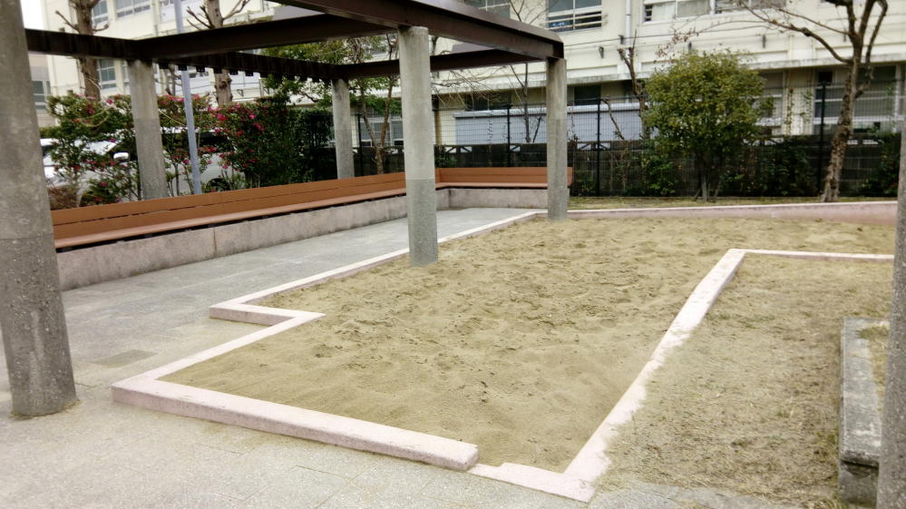 あとは砂場とベンチ。まぁ砂場があれば日が暮れるまで遊びつくせる。ベンチが近くにあるから親御さんも子供を見守れて安心ですな。