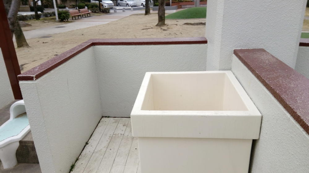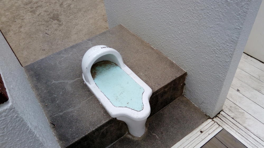 もちろんトイレは和式。どっち向いてすればいいのか悩むやつ。しかし便座を後付けすれば洋式風に早変わりだ。