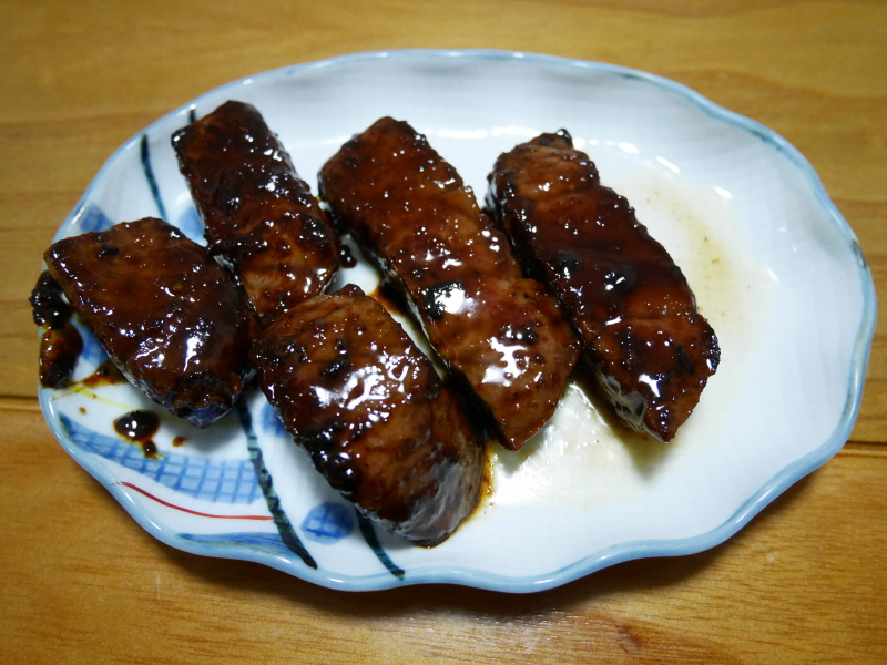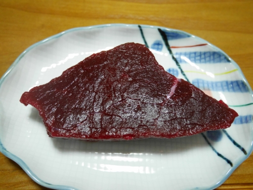 食感も味もマグロそっくりなんだけどね・・・・・・なんか臭うんですよ。 クジラ肉独特のクセっていうのかな? 結論を言うとあまり美味しくない。いや、これは僕の個人的な感想やけどな。