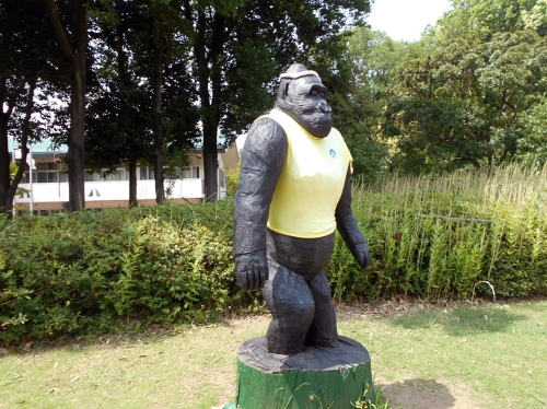 ※大泉緑地の噴水広場の近くにゴリラは立っています。