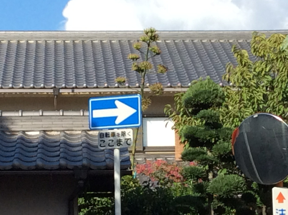 今年、とうとうリュウゼツランの花が咲いたらしく、テレビ番組でもたびたび取材されていました。とりあえず寺の横から見てみた。
