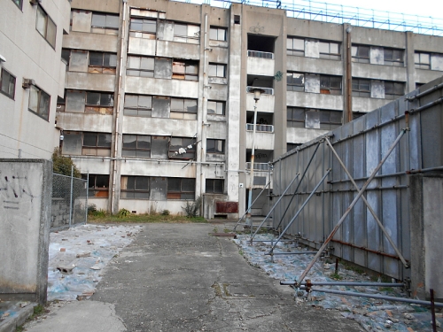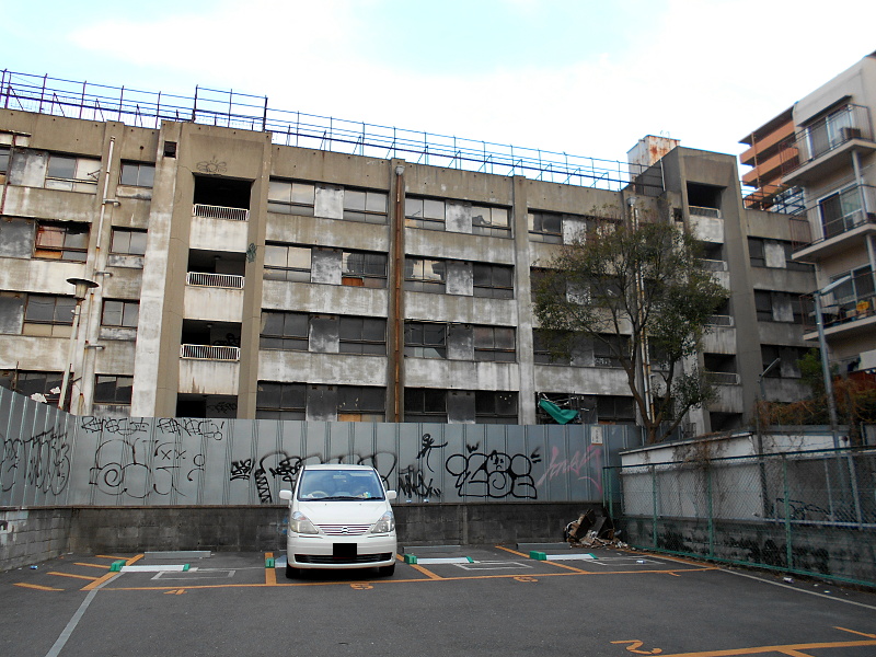 写真ではわからないが、実はこの建物は2棟に分かれいたり、他にも敷地内にはクソ汚い保育所などがあったりして、ちょっぴり不気味なオーラを放ってました。 あまり行くことをお勧めしませんが、こんな廃墟みたいな建物もあるってことを、大阪のひとつの個性として受け取ってもらえたら幸いですな。