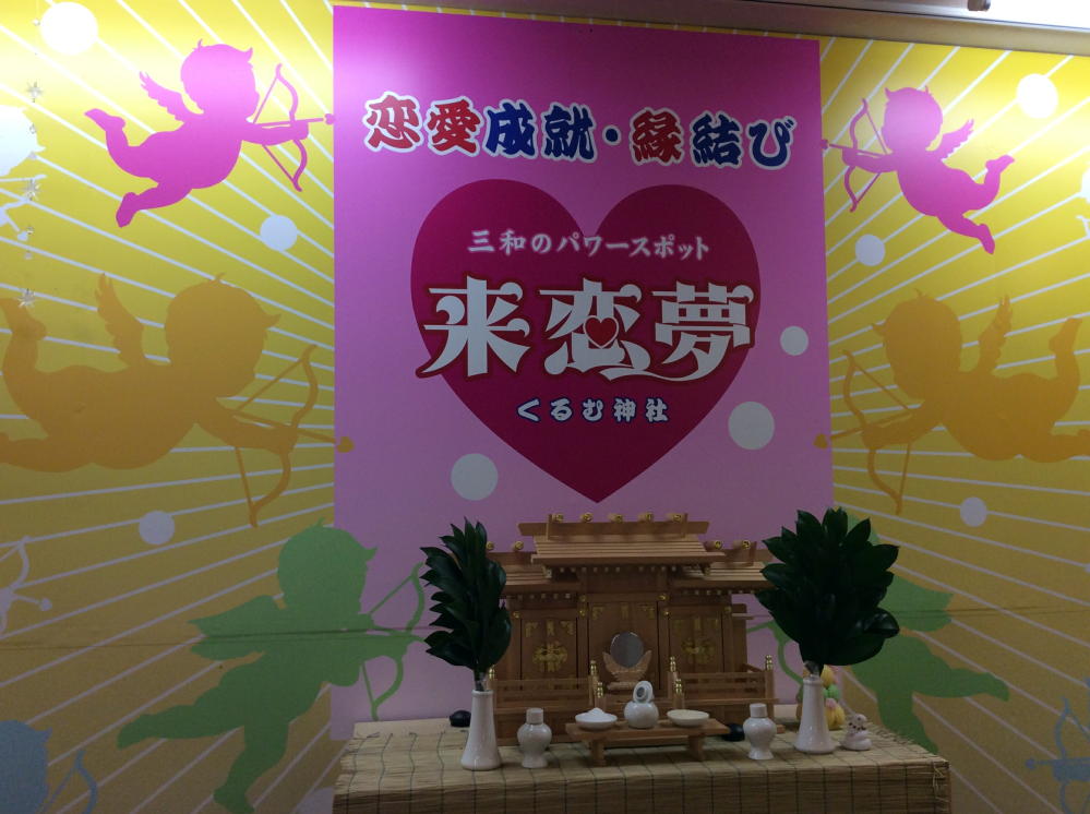 『三和のパワースポット 来恋夢神社』ということで、恋愛とは縁のない人は必死に拝んでおくことをオススメします。うん、僕のことやね。