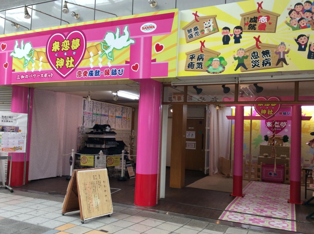 2014年に商店街に建てられた、恋愛成就・縁結びの来恋夢神社。以前にも僕はチラッと来たことがあるので、当ブログでもチラッと紹介したが、あれから1年以上経ってチラッと変化が起きてました。