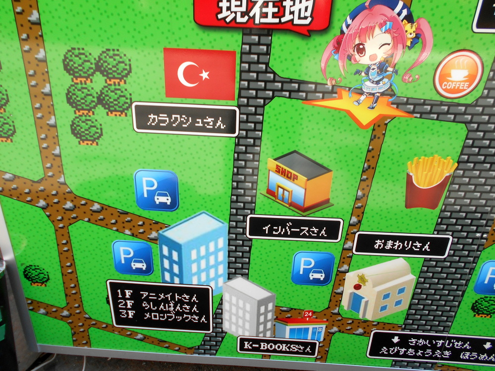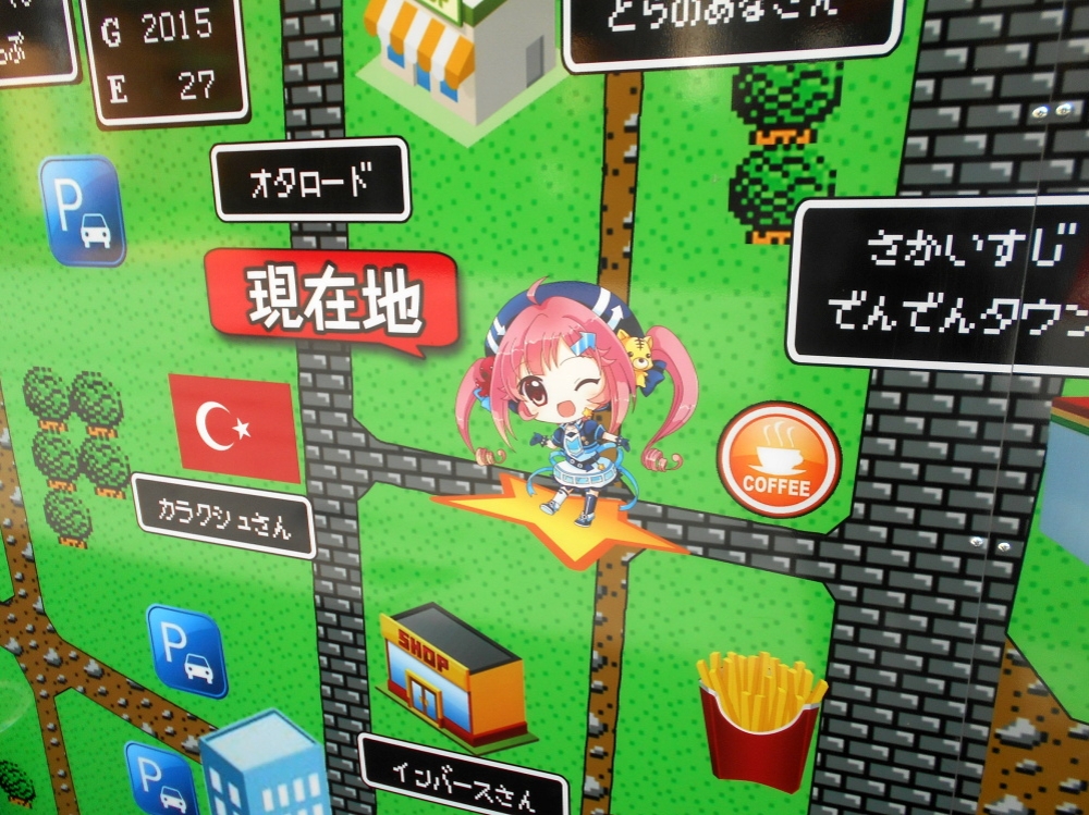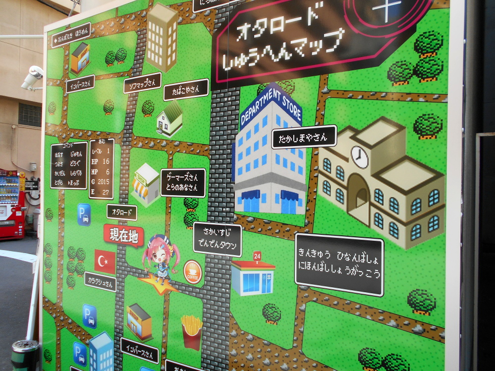 赤髪の美少女がいるところが現在地になってます。RPG風マップをみてわかるとおり、オタロードから一本東へ入ったところにこのマップはあるのです。