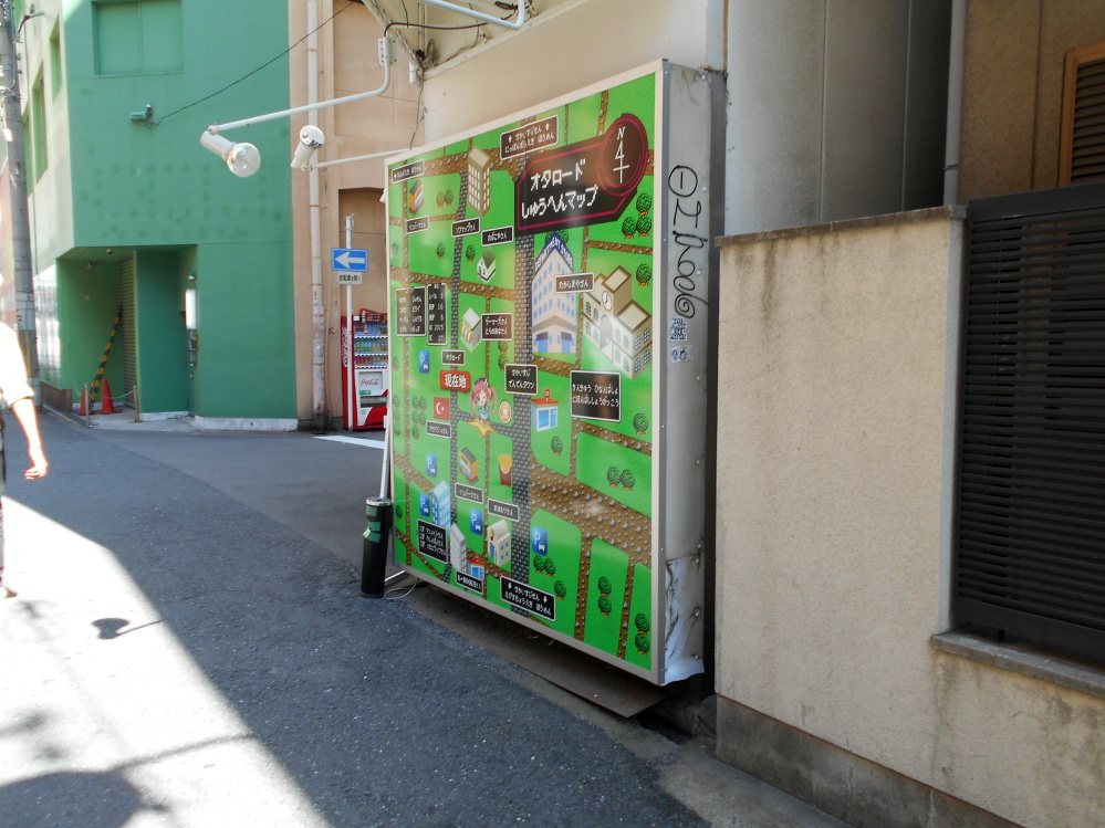 ここは大阪の日本橋。例のRPG風マップがあるのはゆるこすっ!というクレーンゲーム専門店の壁にあるのです。