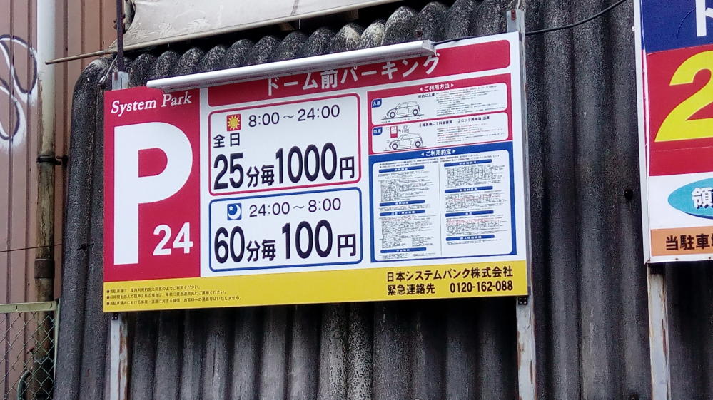 イベントコンサートが頻繁に行われる京セラドームのお隣だからこその超強気価格ってことなのかね。ま、まぁ・・・本音を言うと思うところは多々ある。とりあえず運転手はしっかり看板を確認してから利用するかしないかを判断だ。コインパーキング絡みのトラブルはなるべく避けたいものだからな。