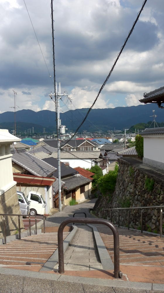たぶんこの坂(階段?)が山中田坂なのだと思う。坂と街並みの風景がいいかんじですな。