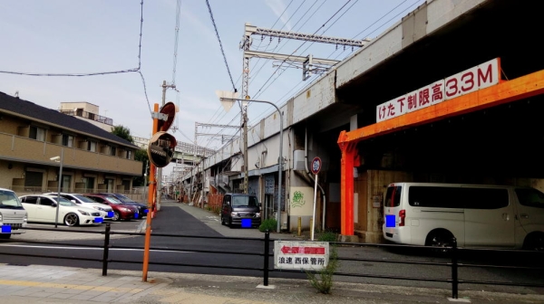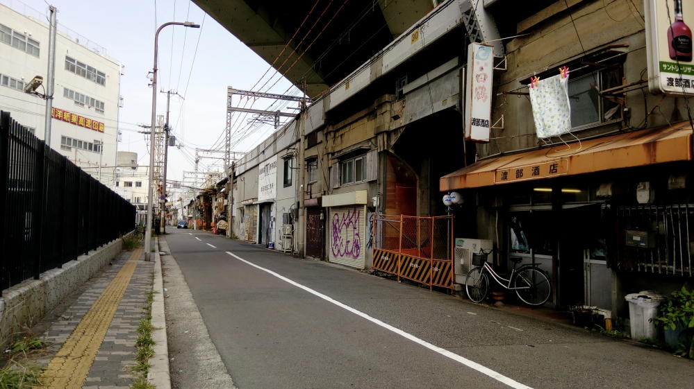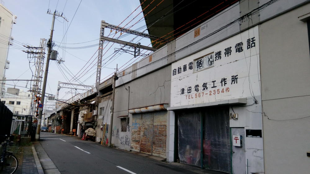 駅から西へ歩いていくことにした。ちょうど大阪環状線の高架に沿って歩いているところです。