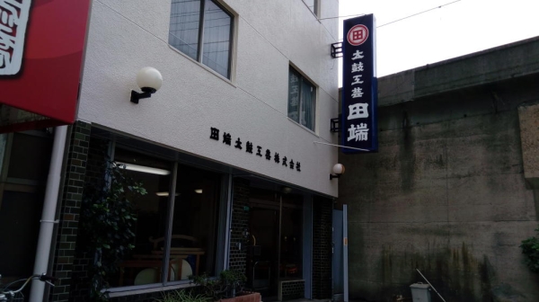 芦原橋駅のお隣には太鼓屋さんがあった。今でも営業していたぞ。こちらは「田端太鼓工芸株式会社」という。
