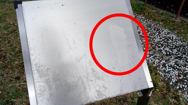 そしてなんか知らんけど、めっちゃキレイな足跡(赤丸の部分)がついてた。