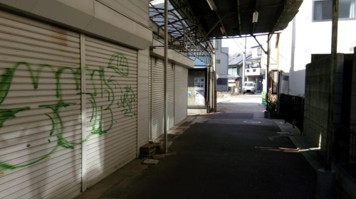 神明通商店街のようす↑(長さは20~30mくらい。かなり短い商店街です)
