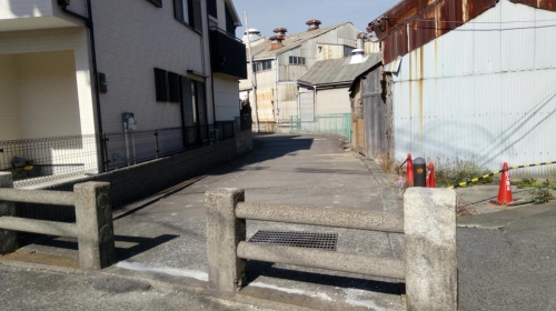 神明通商店街を抜けた先にある暗渠(あんきょ)らしき道↑