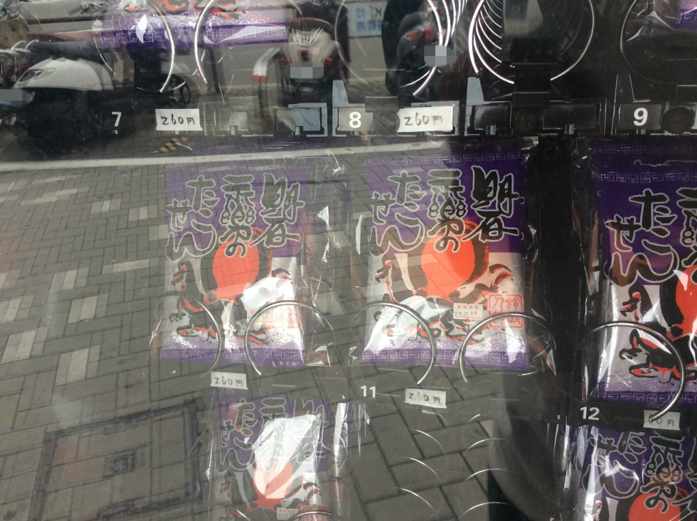 明石名物のタコを使った永楽堂のたこせん自販機です。非常に気になったので買ってみました。