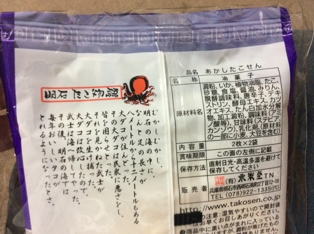 裏パッケージには「明石たこ物語」というお話が書かれていました。