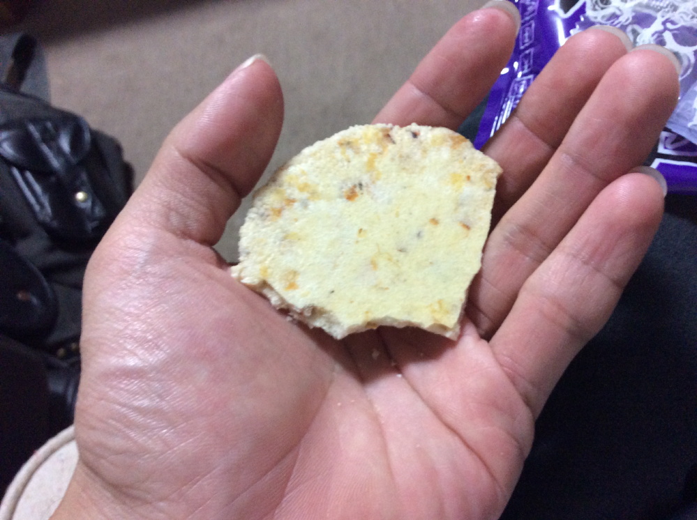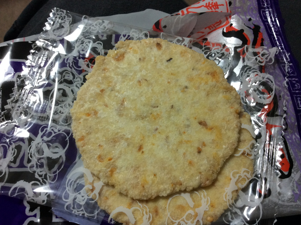 薄いがけっこう硬い。アゴが弱い人はちょびちょび食べないとな。