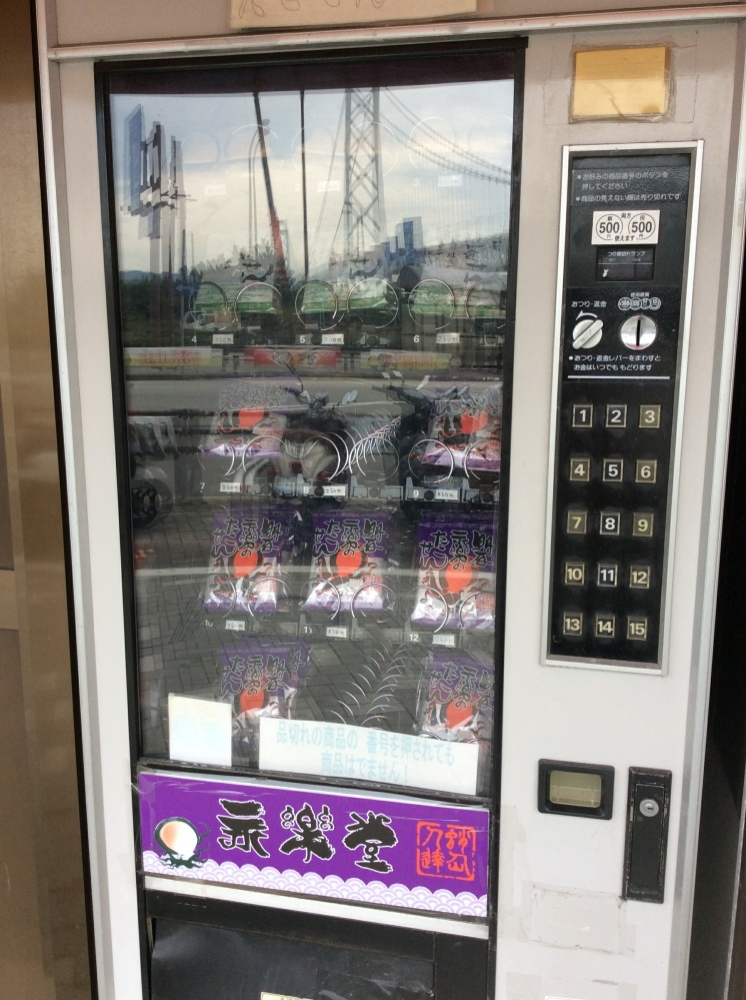 兵庫県神戸市垂水区・・・明石海峡大橋の端っこにある舞子駅。舞子駅の西側すぐ前に変わった自販機がありました。