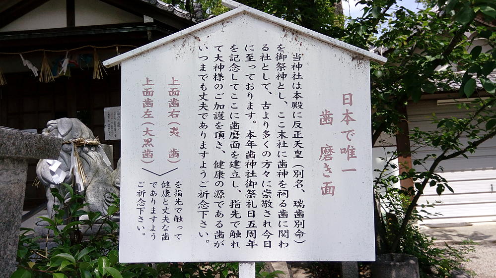 どうやらこの歯磨き面は日本で唯一のものらしい。この柴籬神社でしかお目にかかれないってことやな。歯の神様じたいが大阪府内でもあんまり存在しないっぽいので納得です。