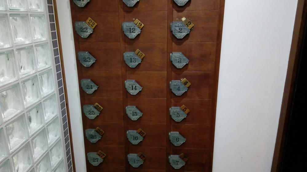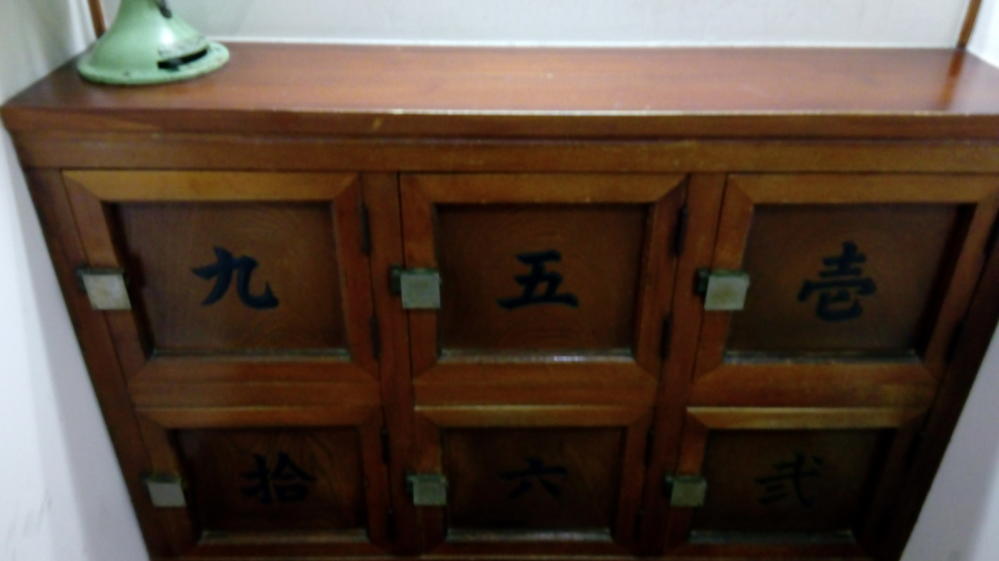 そして木のカギのロッカー・・・さいきんは少ないけど、昔の銭湯にあるロッカーですね。