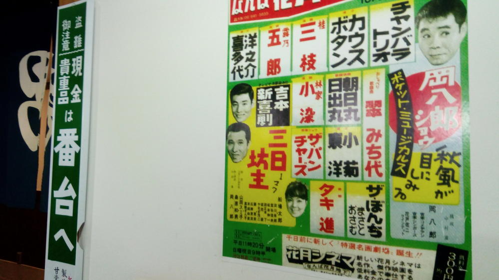 こっちにも昭和ポスター。左の柱には銭湯風の盗難ご注意のプレート・・・「現金貴重品は番台へ」って書いてる。
