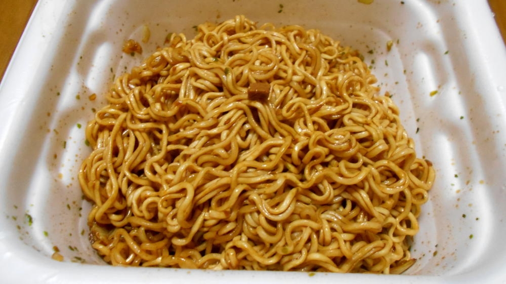 麺に液体ソースを絡めて、あとは食べるだけ。