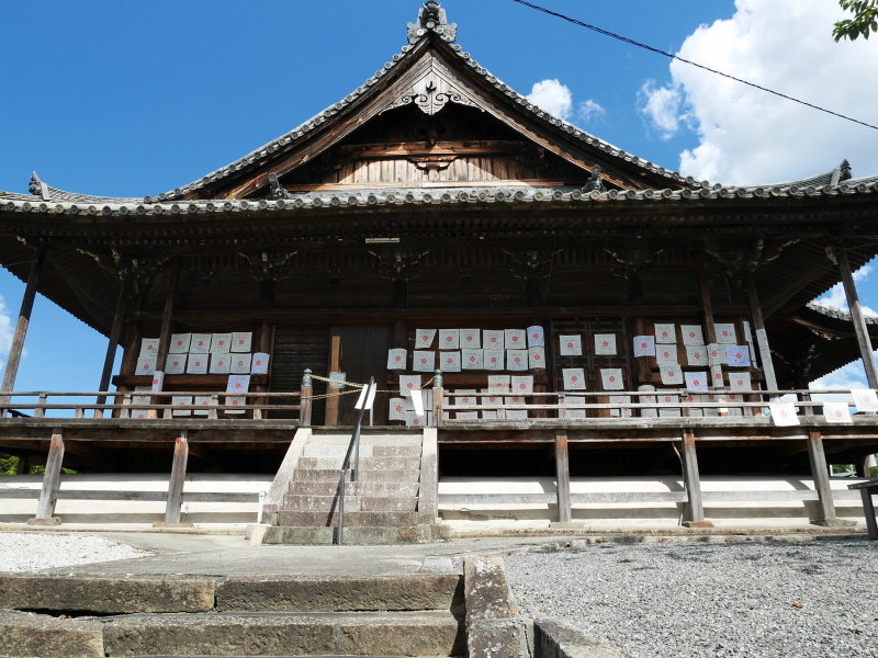 まあ家原寺の細かいところはまたの機会にでも紹介するとして、今日はハンカチで真っ白になっている本堂だったな。 ここから見えているデカいヤツがお目当ての場所です。