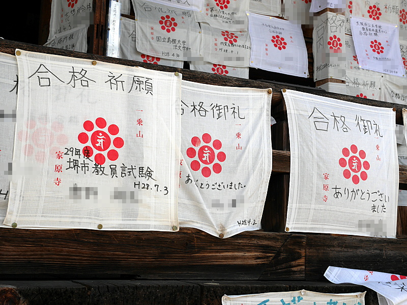 とりあえず今日は、本堂の壁という壁が白い合格祈願ハンカチで埋め尽くされている家原寺の光景をご覧ください。