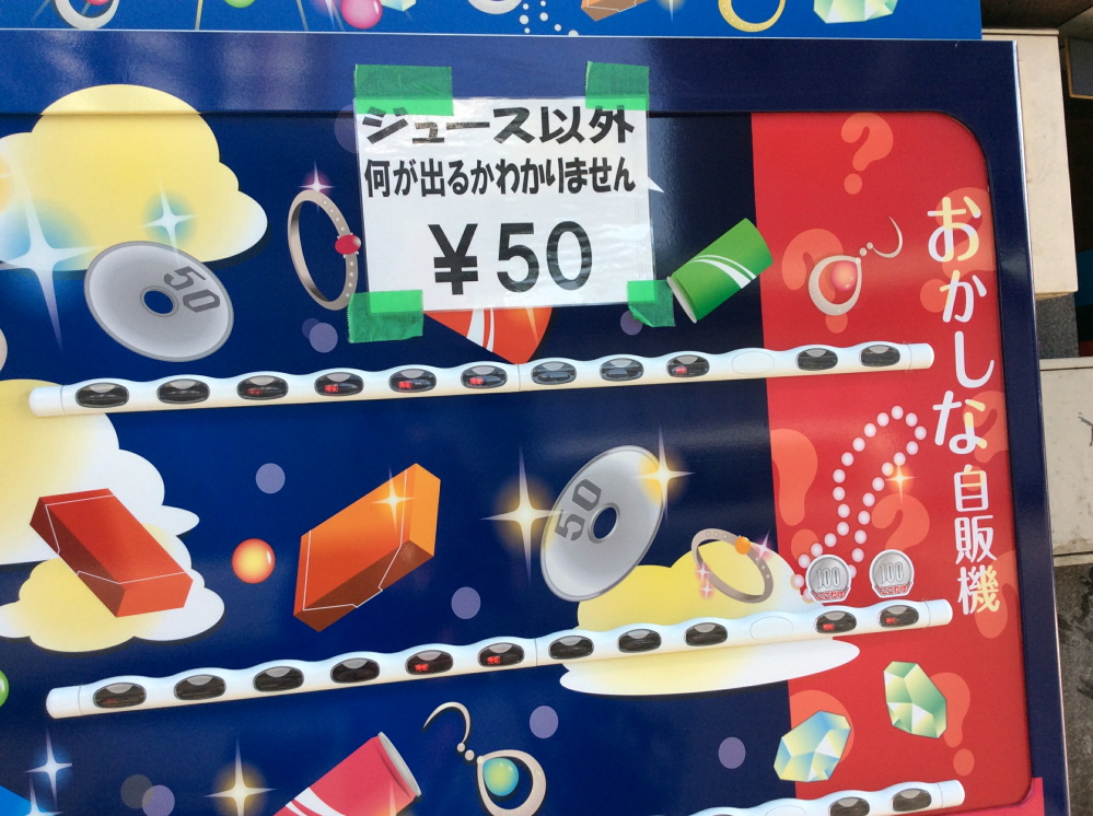 50円でジュース以外の何かが出てくるというギャンブル心&好奇心をくすぐる恐ろしい自販機なのだ!