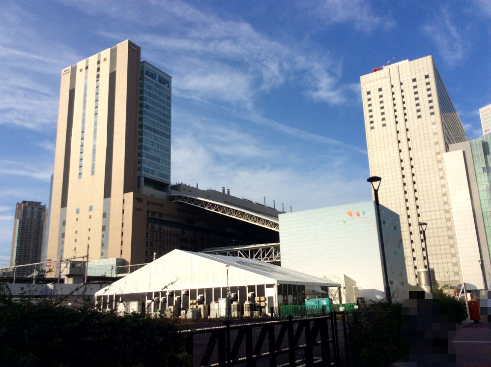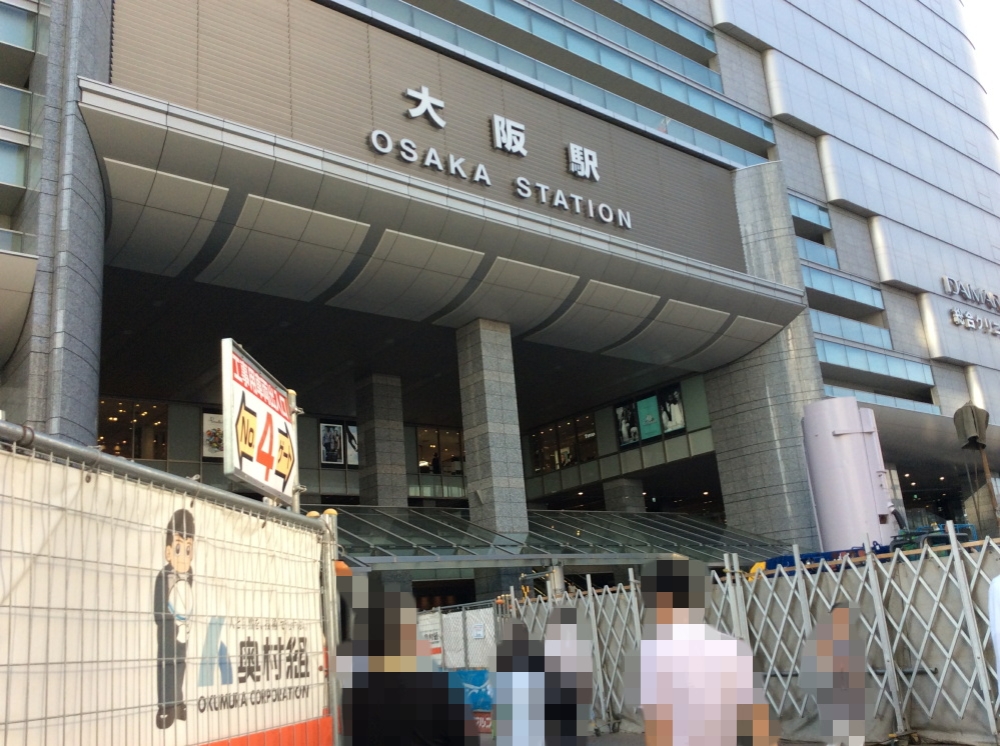 むこうに見えるナナメの屋根は大阪駅。大阪府最大級の主要駅ということもあって、いろんな国から人々が訪れます。