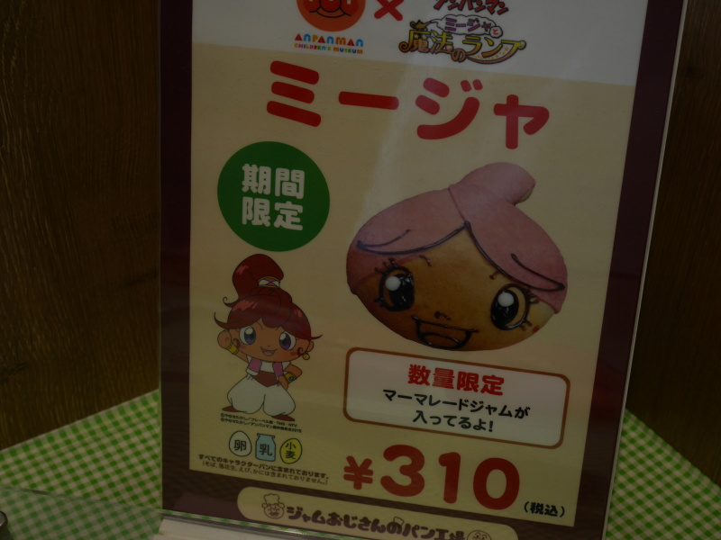 ミージャというキャラクターです。 このキャラは映画版で登場するらしいので、今だけ期間限定の販売となってるみたい。 入り口でメニューをみたときに期間限定って書いてたので、コレだけは絶対に買おうと決めてました。 ちなみにマーマレードジャム(柑橘系のジャム)のパンです。