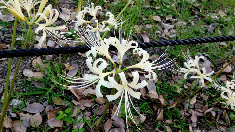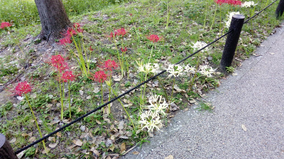 もちろん一般的な赤い彼岸花がほとんどだったのですが、ところどころに白い彼岸花も咲いてました。白い彼岸花は地域によっては一般的だったりするみたいですが、大阪府内では、わりとレアな存在なんじゃないだろうか。