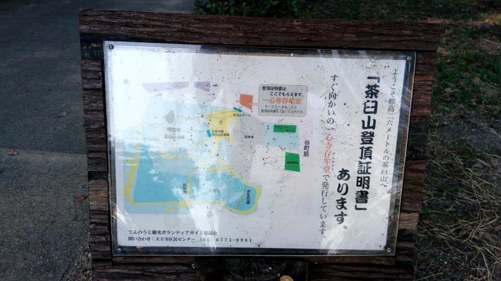 ちなみに登頂に成功したら「茶臼山登頂証明書」(1部100円)なるものを貰うことができる。9:00~16:00までに一心寺存牟堂(いっしんじぞんむどう)で発行してるっぽい。・・・まぁしかし僕は貰ってないけどな。べ、べつに100円がもったいないとか、そんなこと思ってないんだからねっ!///