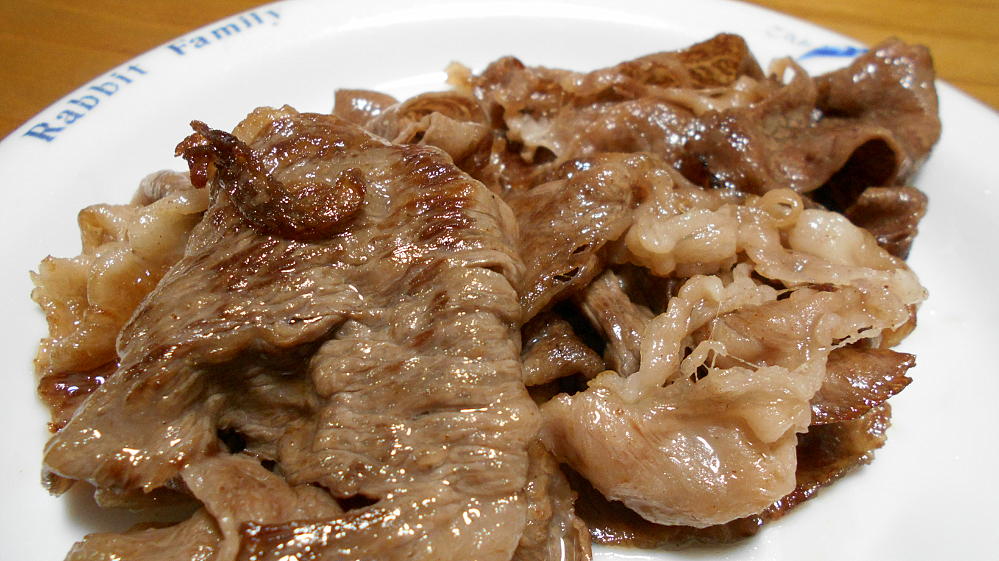 高級肉といえば、ワサビ醤油。ちょいとワサビを入れすぎた感はありますが、こちらとの相性もよくて、非常に美味しかったです。醤油の塩味とワサビの刺激がいいアクセントになってました。ちなみに僕がお肉をワサビ醤油で食べるのって、たぶんこれが初めてです。あまり付け過ぎるとお肉の味を消しちゃうので、ちょびっとだけ付けるほうが美味しく食べれると思うぞ。