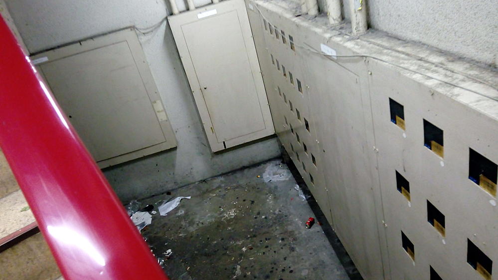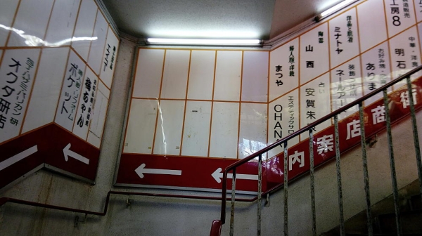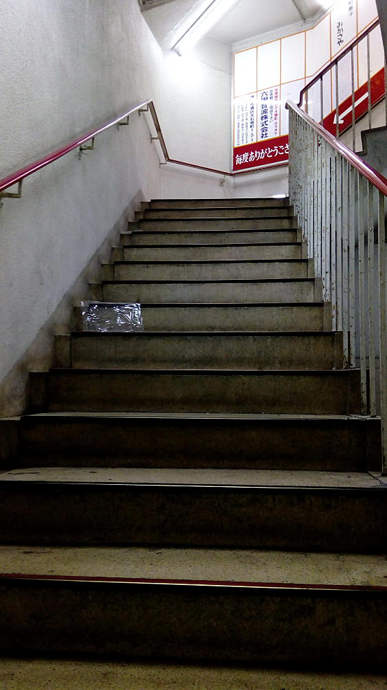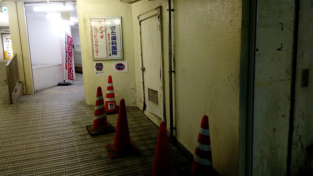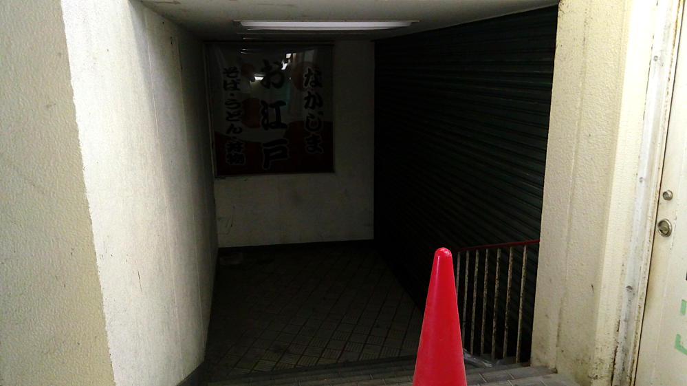 こちらも地下道からの入口だった場所。もちろんこちらもシャッターは閉まっている。