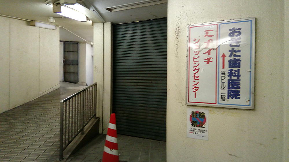 閉鎖した後の様子から。撮影日は2019年11月です。東山商店街でサキイカを買いに行ったときに、ついでにミナイチビル周辺も探索してみたんだ。