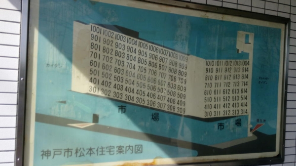 この案内図を見る限り、ミナイチビルと合体している神戸市松本住宅は3階~10階までとなっているみたい。1階と2階、そして地下は市場となっている。