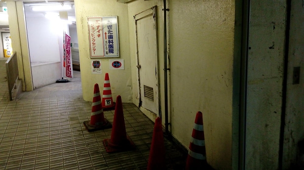 閉鎖後のミナイチビルの入口は、シャッター或いは、白い壁によって封鎖されていました。
