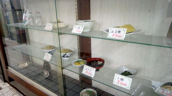 うまそうなメシのサンプルが並んでる。どれも家庭的な料理で旨そうや。