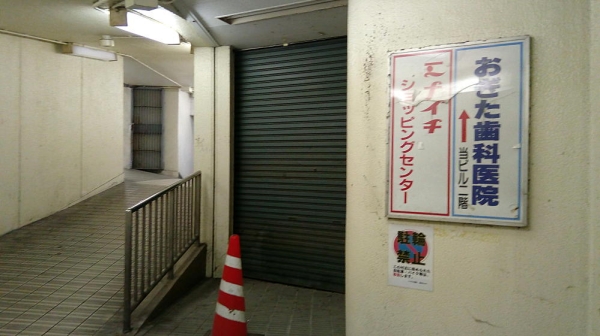 地下道に降りた。地下道からの入口だった場所ですが、シャッターが閉まっているため入れない。