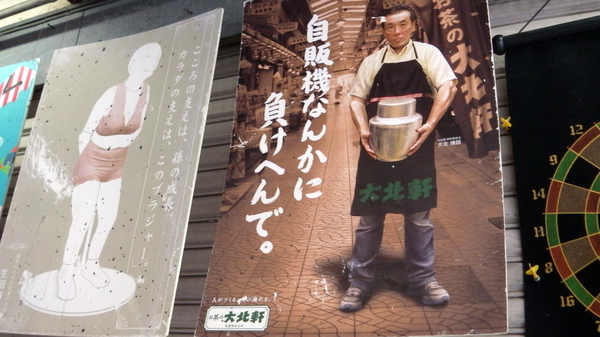 自販機をお見せしたばかりなのに申し訳ない。「自販機なんかに負けへんで。」というお茶屋さんのポスターです。