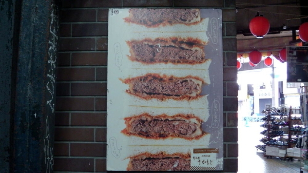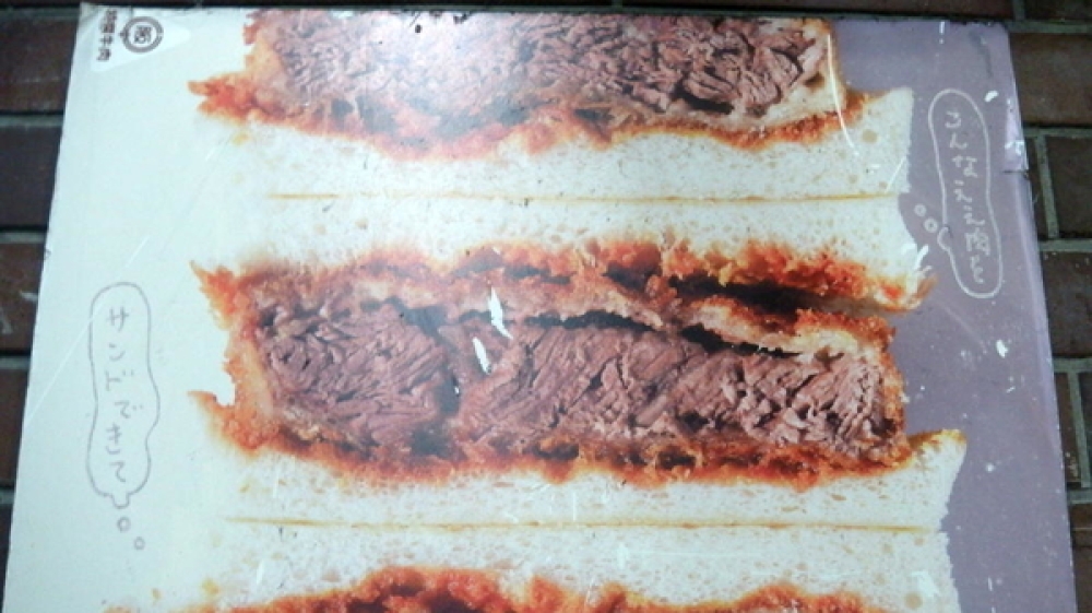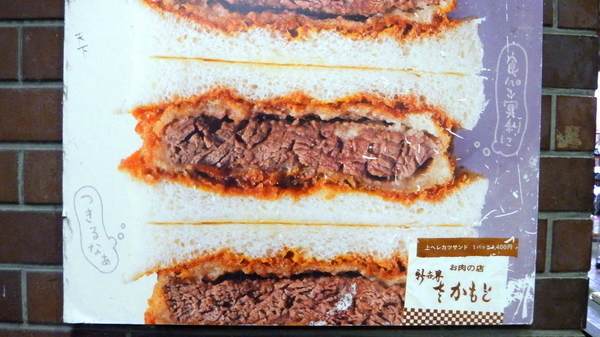 ちなみにこのポスターに写ってる上ヘレカツサンドは1パック1400円らしい・・・・・・よく見るとポスターの右下に小さくかいてる。一見ふざけているように見えて、ちゃんとポスターとして宣伝してくれているから侮れない。