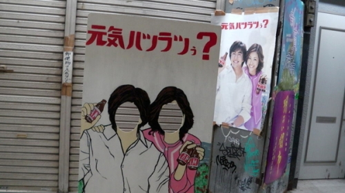 「元気ハツラツぅ?」なオロナミンC顔ハメです。顔はめパネルの後ろには、若き日の上戸彩とペ・ヨンジュンのポスターが貼ってあるところがポイント。地味に恐ろしい再現度・・・・・・これの製作者は将来、立派な贋作師として世界で活躍することでしょう。