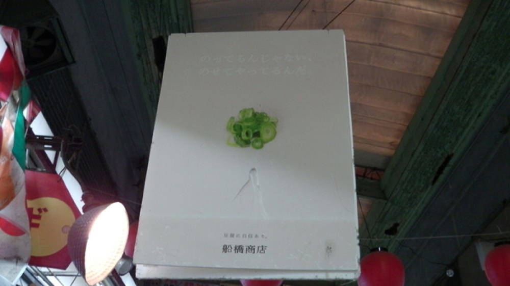 「のってるんじゃない。のせてやってるんだ」・・・・・・「豆腐に自信あり」と書かれている。